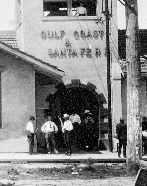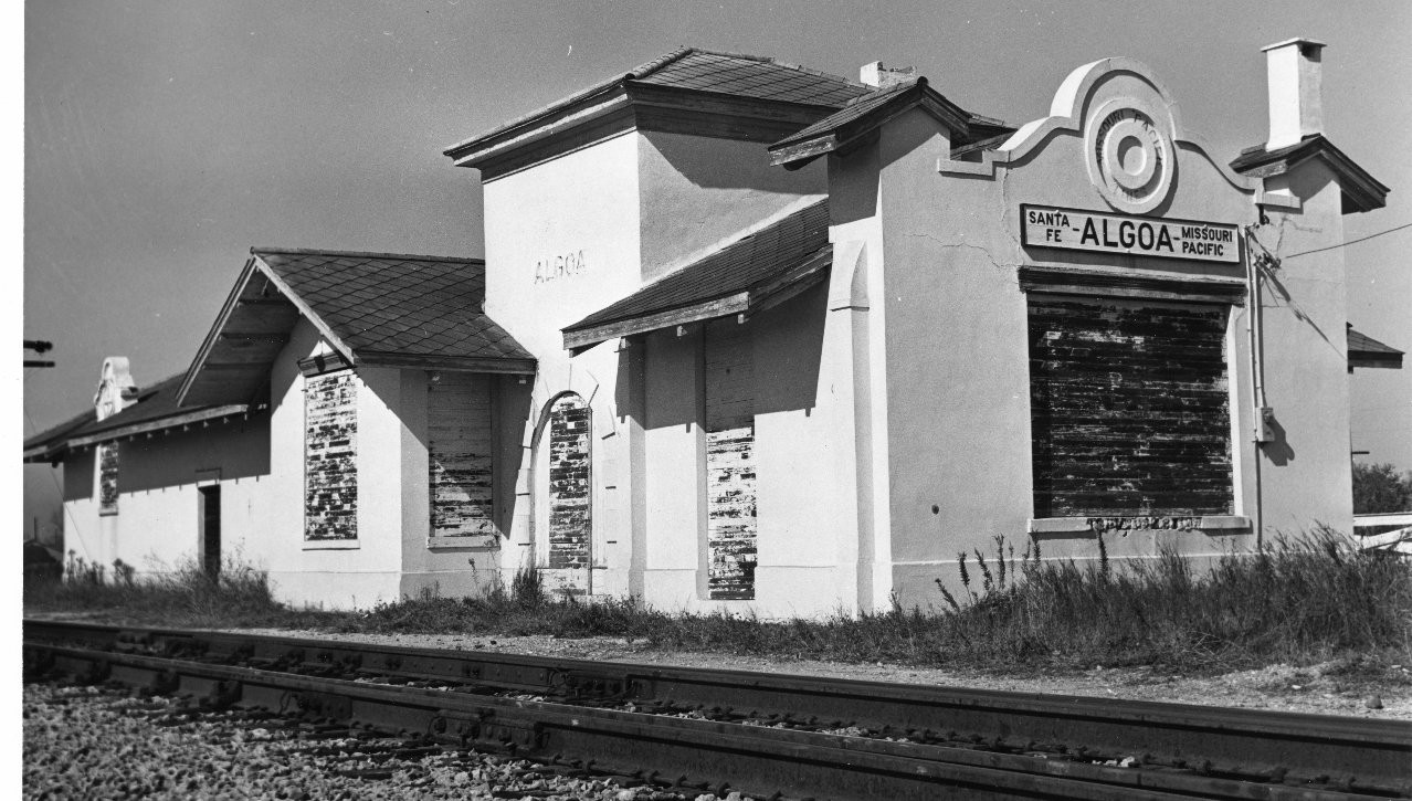 Algoa was served by the Gulf, Colorado & Santa Fe and the St. Louis, Brownsville & Mexico railroads. Passenger operations were handled by a Union Depot.