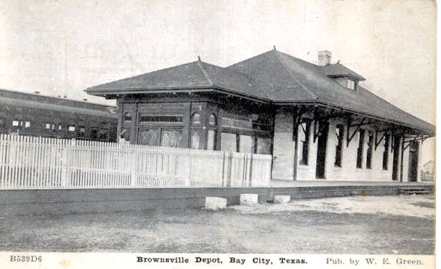 Bay City was served by the Cane Belt Railroad, the New York, Texas & Mexico Railway, and the St. Louis, Brownsville and Mexico Railway.