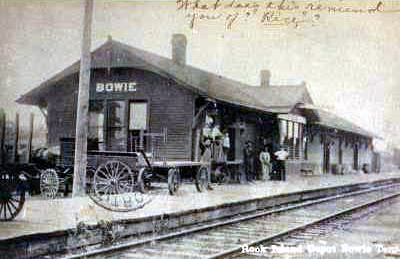 Bowie was served by the Chicago, Rock Island & Pacific Railway and the Fort Worth & Denver Railway.