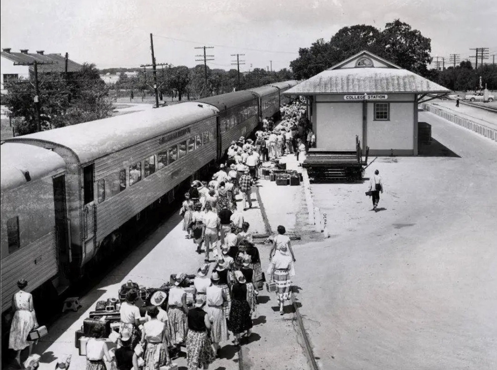 College Station was served by the Southern Pacific (SP) and International & Great Northern (I-GN) railroads.