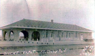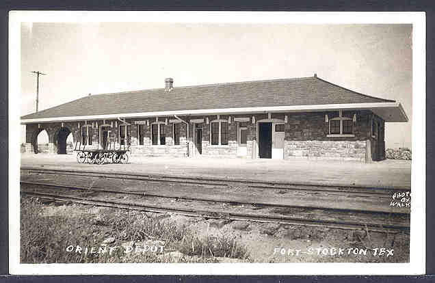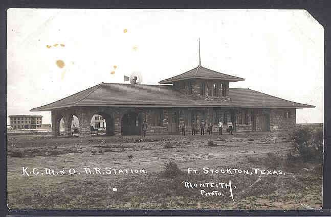 Fort Stockton was served by the Kansas City, Mexico and Orient (KCM&O) Railroad. The KCM&O was acquired by the Atchison, Topeka & Santa Fe in the 1920s. The depot remains standing.