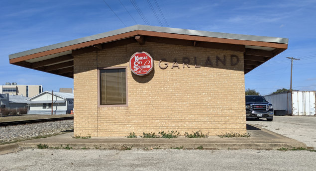 The last Santa Fe depot in Garland was this modest brick building adjacent to the Santa Fe tracks. It is now an office for KCS.