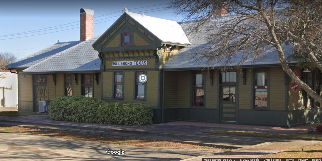 Hillsboro was served by the St. Louis Southwestern ("Cotton Belt"), the Missouri - Kansas - Texas ("Katy"), the Trinity & Brazos Valley, and the Texas Electric railroads.