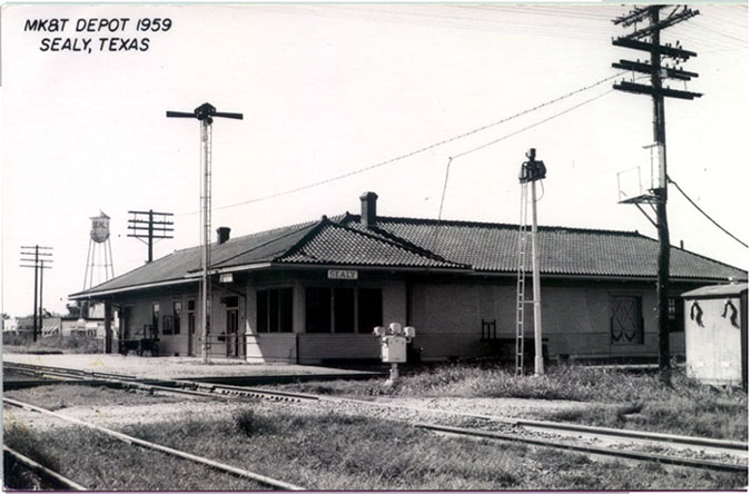 Sealy was served by the Gulf, Colorado & Santa Fe and the Cane Belt railroads, both becoming part of the Atchison, Topeka & Santa Fe Railway. It was also served by the Missouri - Kansas - Texas (MKT) Railroad. Passenger operations were handled by a union depot. The Texas Western Railway operated a narrow gauge line into Sealy from Houston in the 1882 - 1896 timeframe.