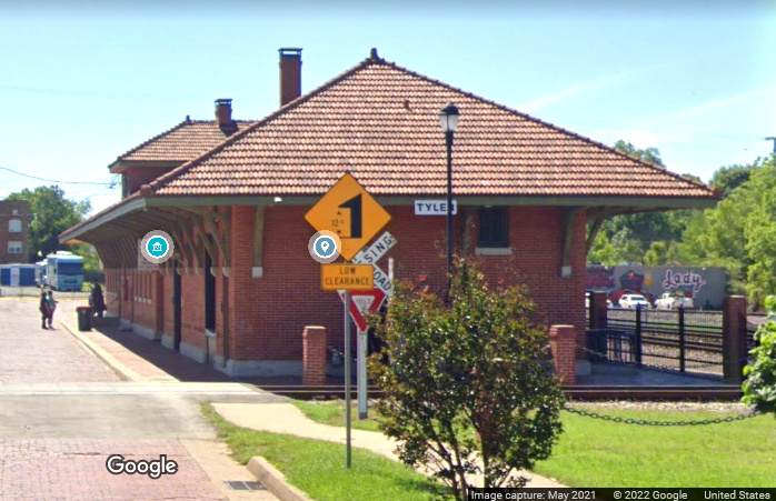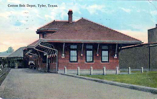 Tyler was served by the St. Louis Southwestern ("Cotton Belt") Railroad and the International & Great Northern Railroad.