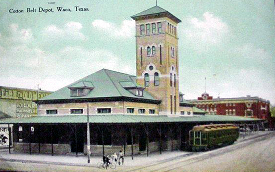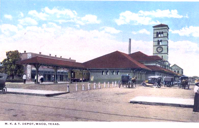 Waco was served by the Houston & Texas Central (H&TC), the San Antonio & Aransas Pass (SA&AP), the St. Louis Southwestern (SSW, "Cotton Belt"), the Missouri - Kansas - Texas (MKT, "Katy"), and the International & Great Northern (I-GN) railroads The Cotton Belt, SA&AP and H&TC all became part of Southern Pacific. The I-GN became part of Missouri Pacific in the mid 1920s.