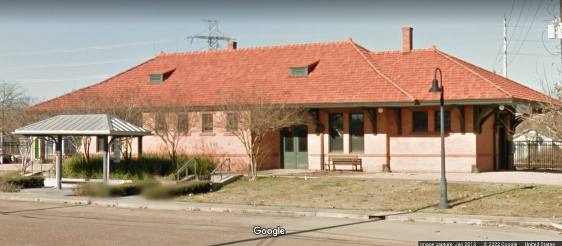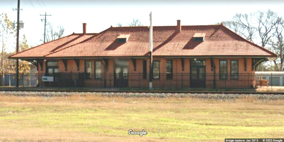 Above and Below: restored Southern Pacific depot in Wharton (Google Street View, 2013)