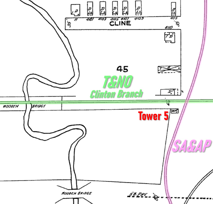 handwritten "SA&AP Ry." The original Tower 5 was operated by T&NO employees, but
