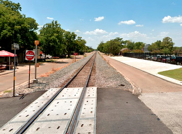 right-of-way coming north (where railcars sit at left) from College Station continues straight across as it always did, but a switch has been added to