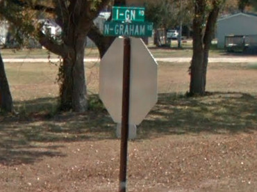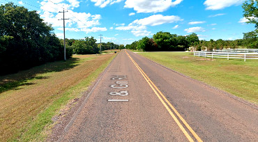 1965.![]() Above: ex I-GN tracks on 27th St., Bryan (Google SV) ![]() Above: I-GN Rd., College Station (Google Street View) ![]() Above: Google Street View projects the "I-Gn Rd" name onto the pavement in this straight stretch of former grade south of College Station. The I-GN right-of-way was probably one hundred feet wide. |