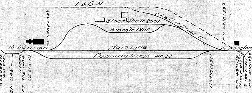 an "I&GN Tr." (transfer) track south of the diamond. The H&TC had been in Bryan