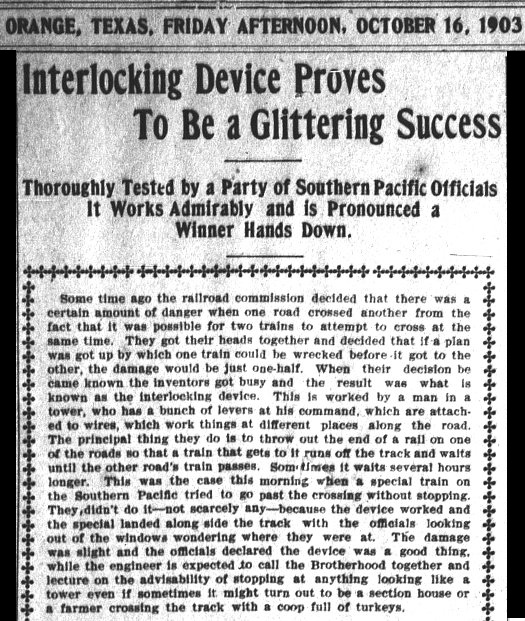 tests might have occurred in the early days of Texas interlockers and