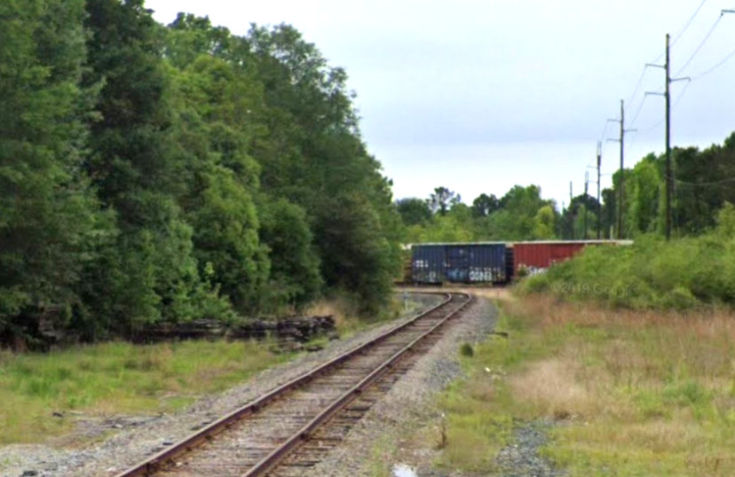 perfectly straight Kansas City Southern (KCS) tracks toward DeQuincy,