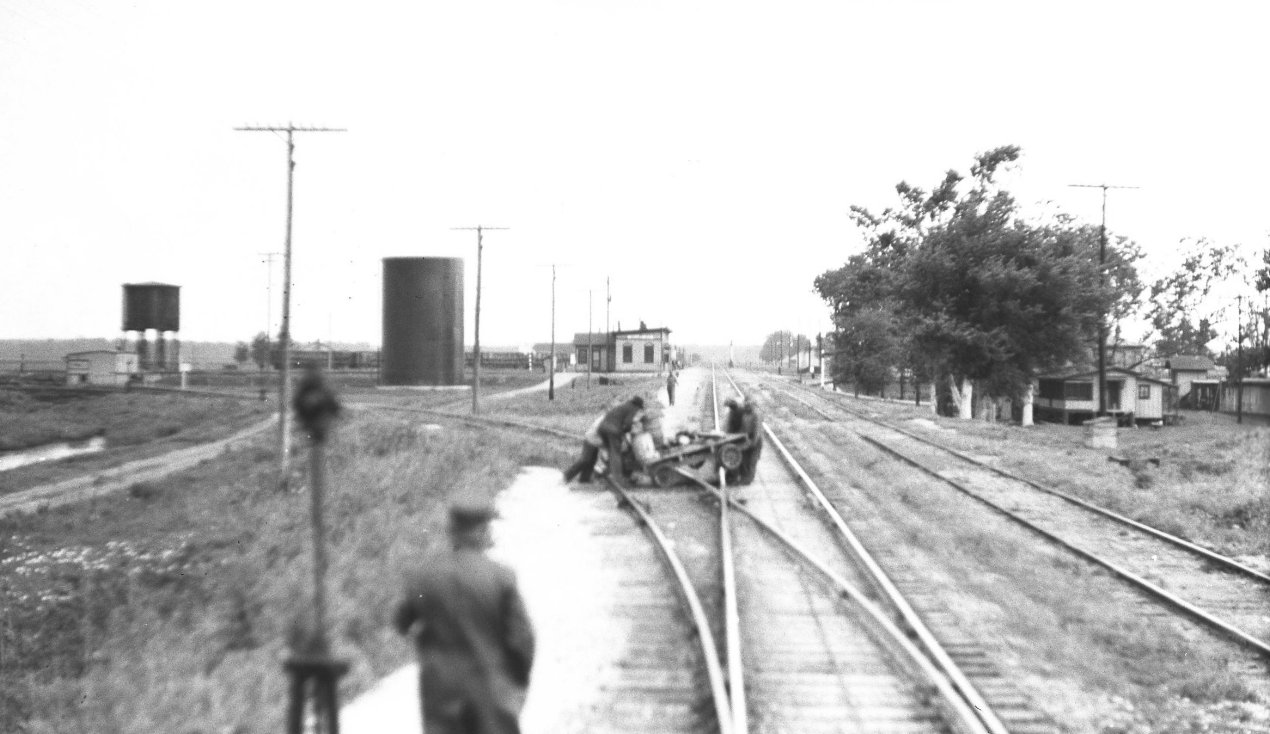 Track-laying continued 5.2 miles farther south to the community of Mumford. From
