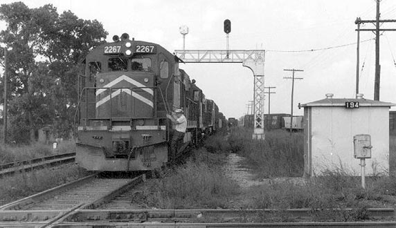 Tower 194 just west of Hearne on July 20, 1975. Note the interlocker controls on
