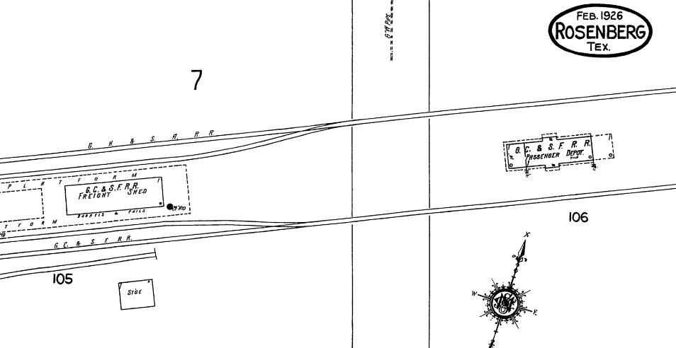 Above: In addition to the main lines built by the GH&SA, the GC&SF and the NYT&M, the GH&SA also built south from Rosenberg in 1918 to