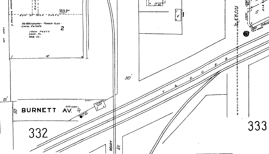 Above Right: The 1907 Sanborn map shows Tower 25 as a 2-story