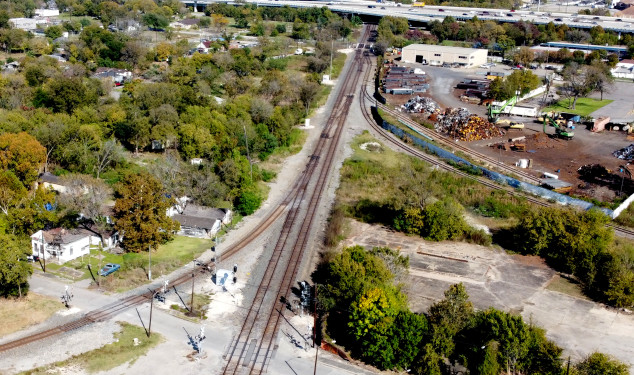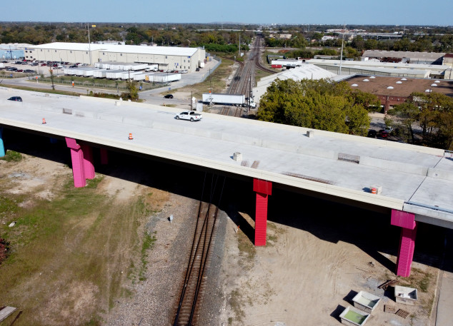 left (south) toward Buffalo Bayou and the Amtrak station.