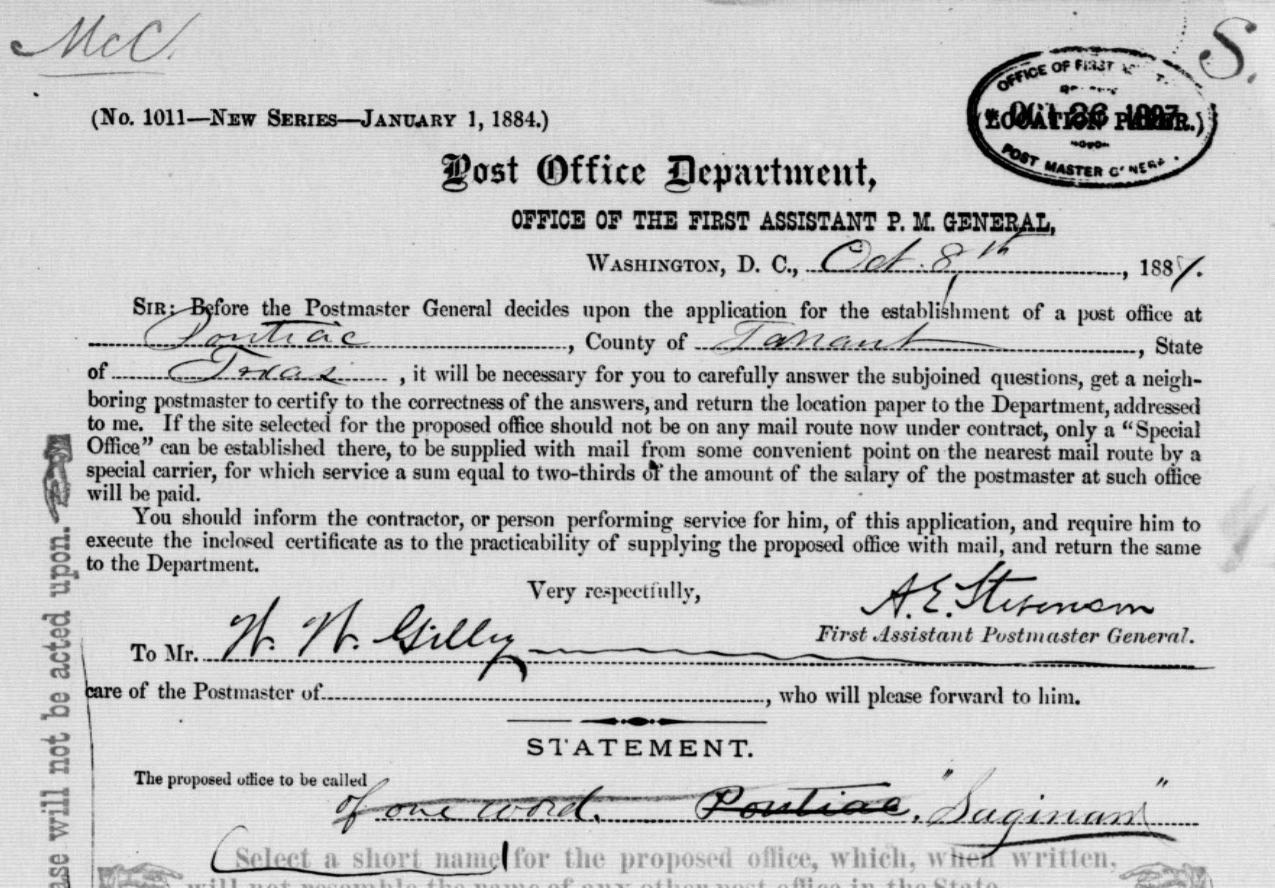 for the Michigan hometown of landowner Jarvis J. Green. Post Office