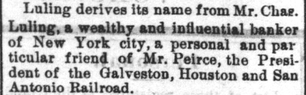 its "Luling" column of news reports, carried this one-sentence item announcing that the
