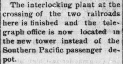 Luling telegraph office had been relocated to the new interlocking tower. The