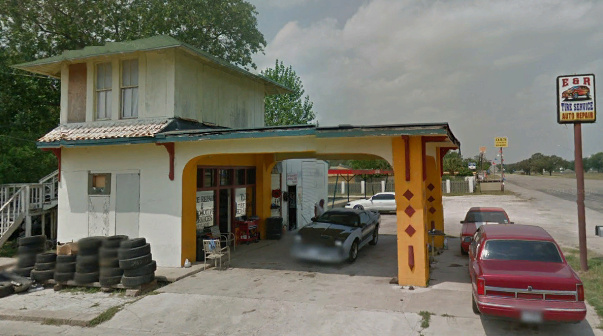 tracks and became a gas station at the corner of Mesquite St. and Pierce St. In 2011, it was the home of E&R Tire Service. It remains one of the