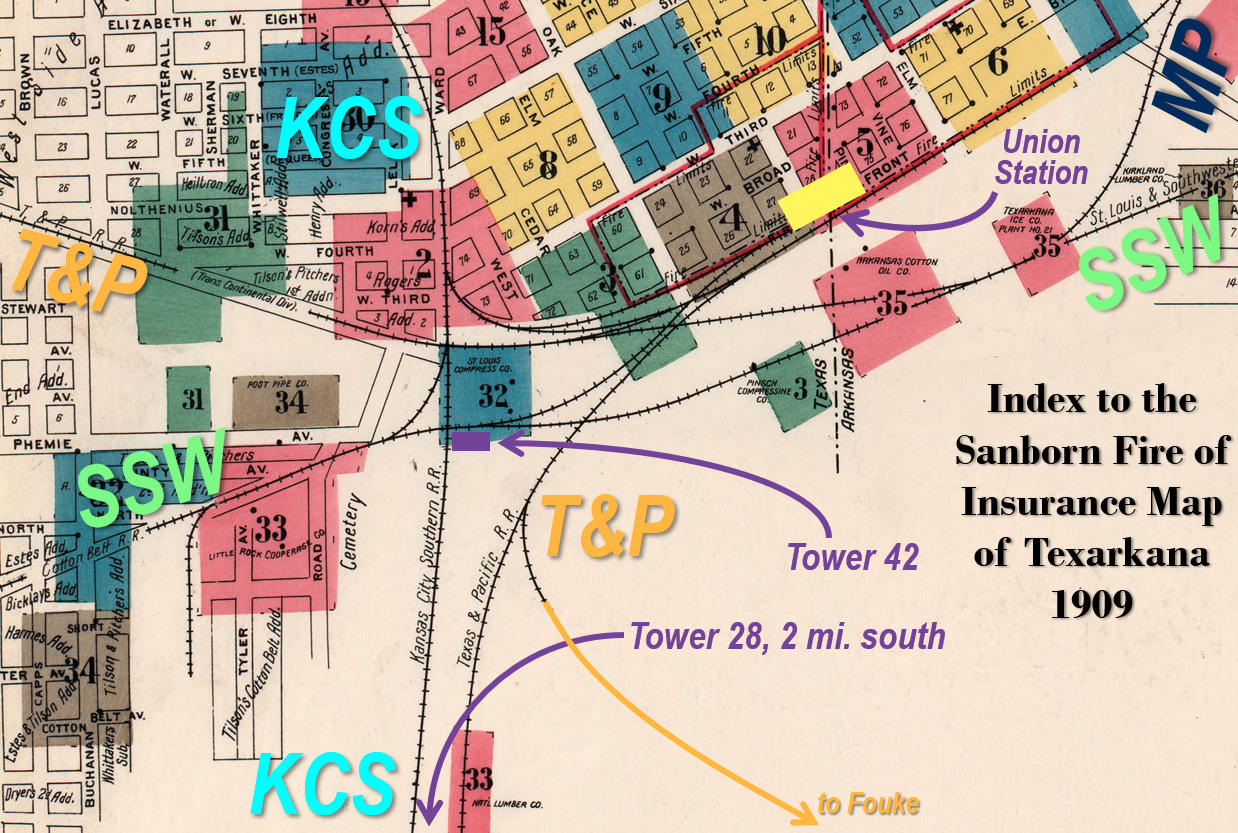 (west) side of the tower. Tower 42 also managed crossings of the Texas &
