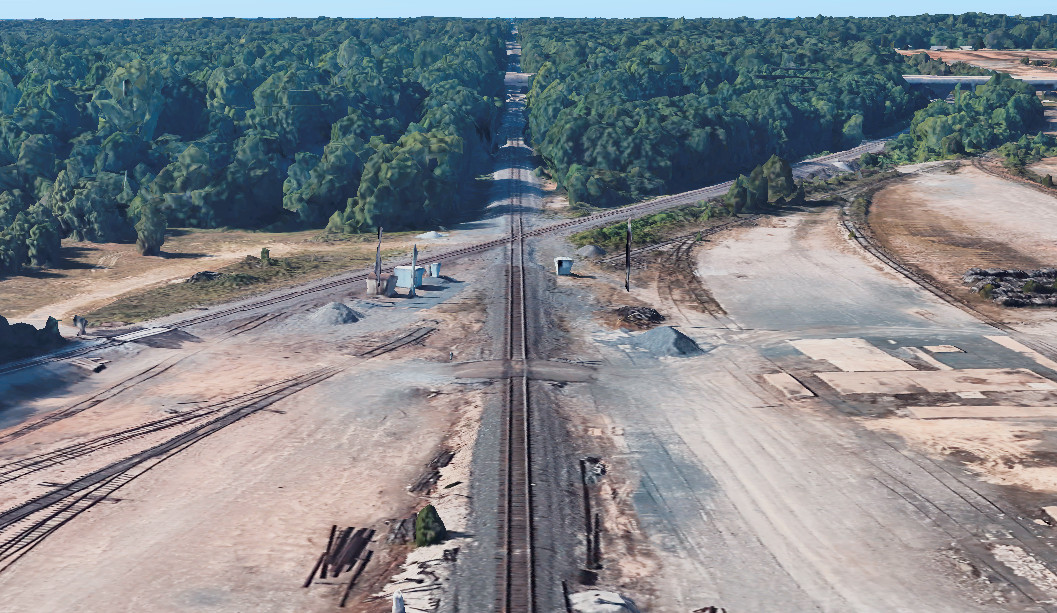 the white-roofed building, the KCS tracks run north / south, crossing the former