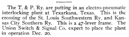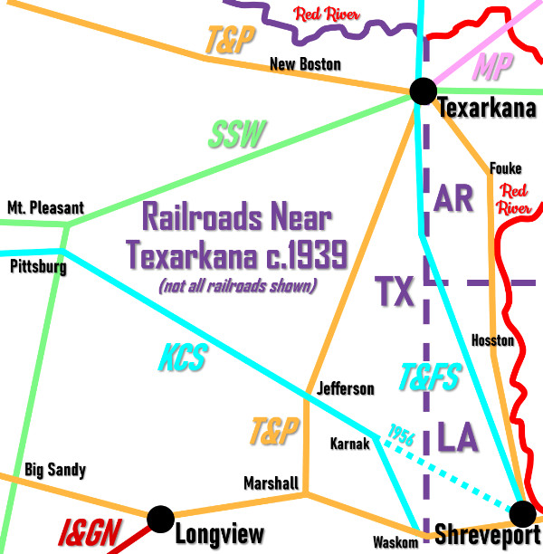Crossings of the St. Louis Southwestern, the Texas & Pacific, and the Texarkana & Fort Smith railroads