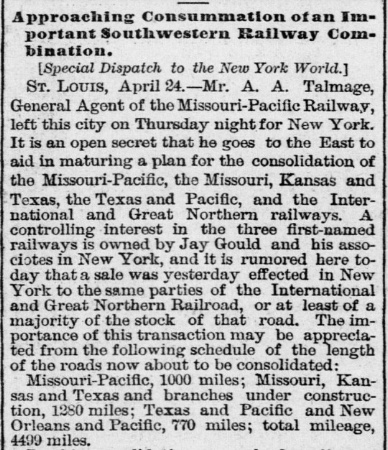 Pacific Railway -- "T&P" -- a year later) for the purpose of building a transcontinental