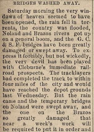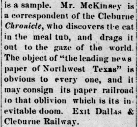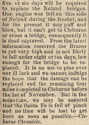 newspaper articles in 1880 regarding the effort to build a Dallas - Cleburne