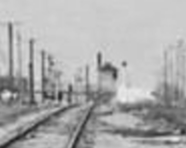 two railroads at the top center of the image at what is actually the northeastern edge of town. The T&BV line
