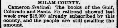 1881, Santa Fe had laid another hundred miles of track to Belton, passing