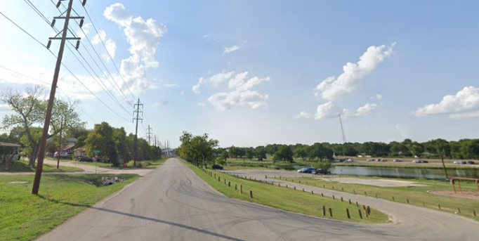 Looking northwest, the former grade of the I&GN spur now carries Cole St. along