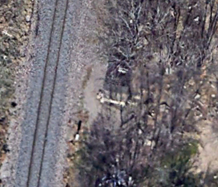 is the potential remnant of the tower's foundation sitting trackside. Note that the path of the utility