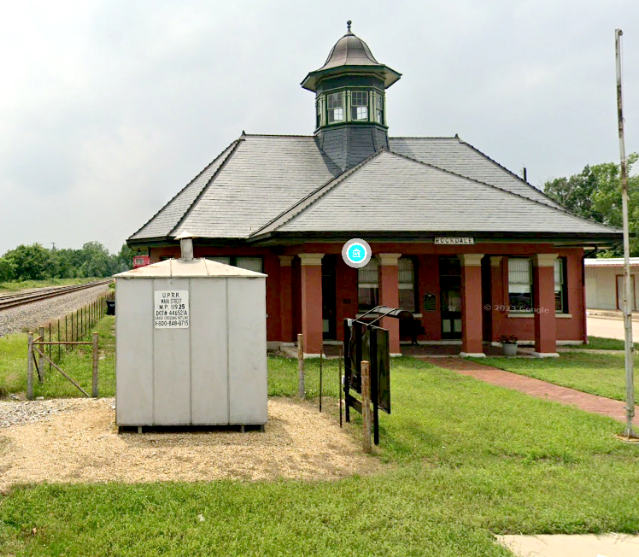 ![]() Above: The I&GN depot still sits beside the tracks, now a museum. (Google Street View) |