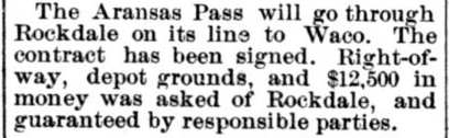 February 21, 1874 reported the rapid development at Rockdale. Since the Texas