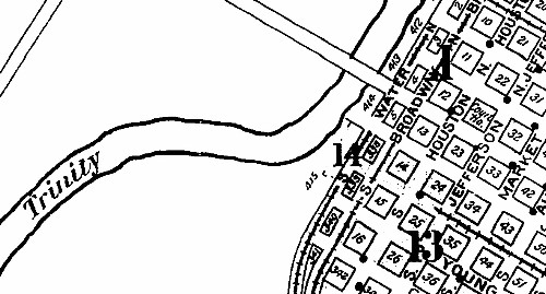 street, literally beside the east bank of the main channel of the Trinity River in downtown