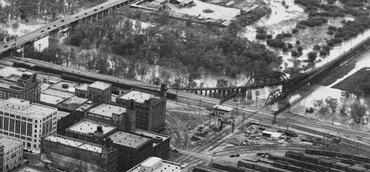 flood of 1949. Tower 106 is prominent near the center of the image which faces