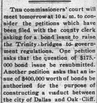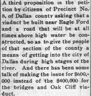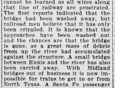Texas Midland bridge at Rosser -- see below.) The river was reported to be