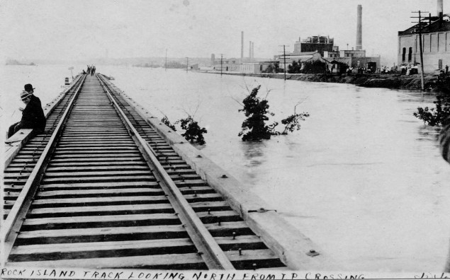 berm in front of the tower, which carried tracks of the Chicago, Rock Island &