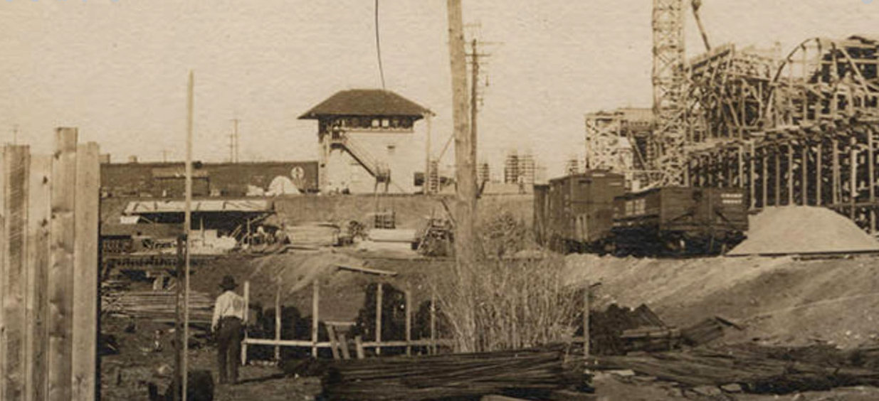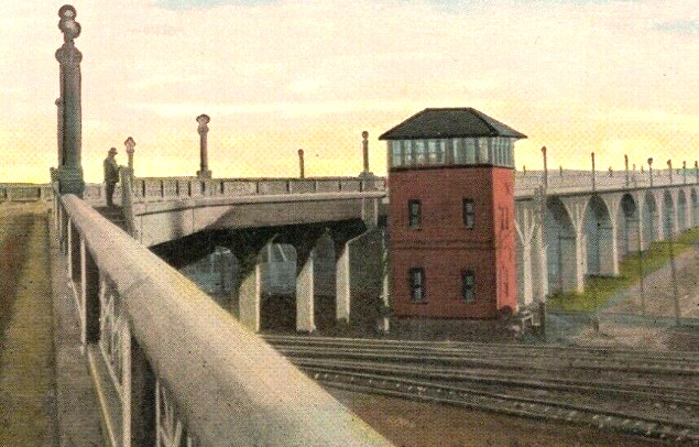 Station. The tower was adjacent to an interurban bridge (note overhead wires
