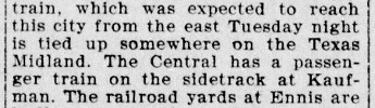 ![]() ![]() Note that 'Central' meant "Houston & Texas Central" (H&TC), a SP subsidiary. All snippets are from the Waxahachie Daily Light of Wednesday, May 27, 1908. |
