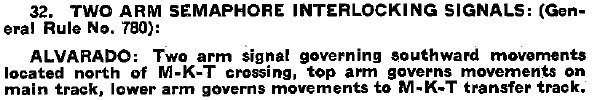 In 1901, a new state law gave the Railroad Commission of Texas (RCT) the authority to mandate safety systems -- interlockers and gates -- for all grade crossings of two railroads in Texas. The Alvarado crossing was interlocked on November 21, 1904 when Tower 58 was commissioned for operation. It was a 20-function mechanical interlocker; twelve was the standard minimum configuration, so the additional functions most likely pertained to switches and signals for the exchange track visible in the Barriger photos above. RCT documentation states that the interlocking tower was installed by the Katy, which also had responsibility for staffing it. Since the crossing existed prior to 1901, the railroads would have split the capital cost of the tower and interlocking plant. They would also share the recurring maintenance and operations costs on a "weighted function" basis. The specific function definitions are unknown, but the sharing for Tower 58 would likely have been 50/50, or close to it.