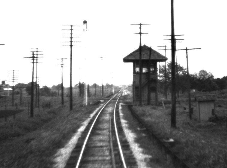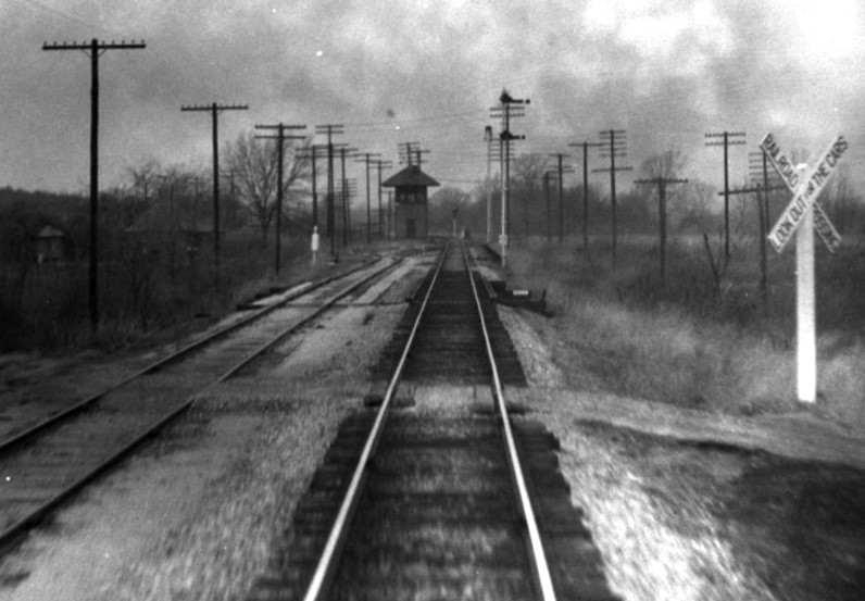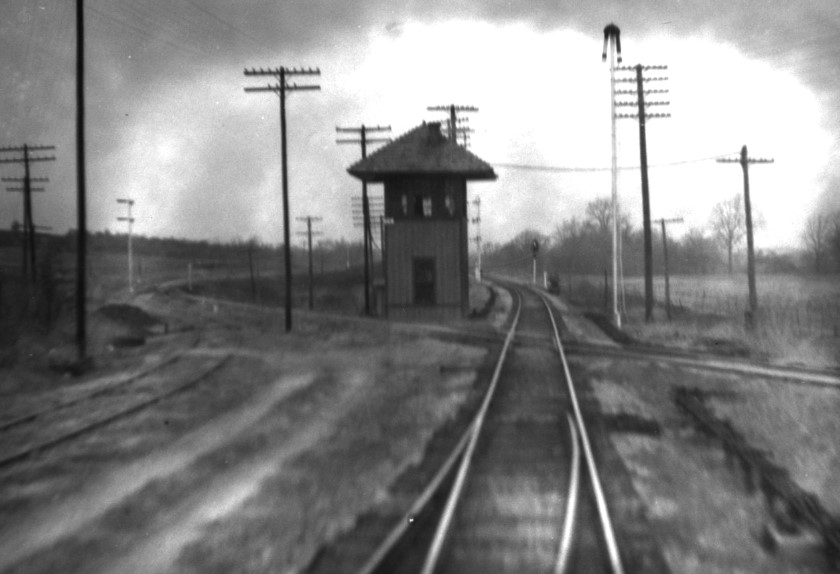 Barriger's photo taken a few seconds later shows a better view of the exchange track. The short connecting track is visible in the distance where the