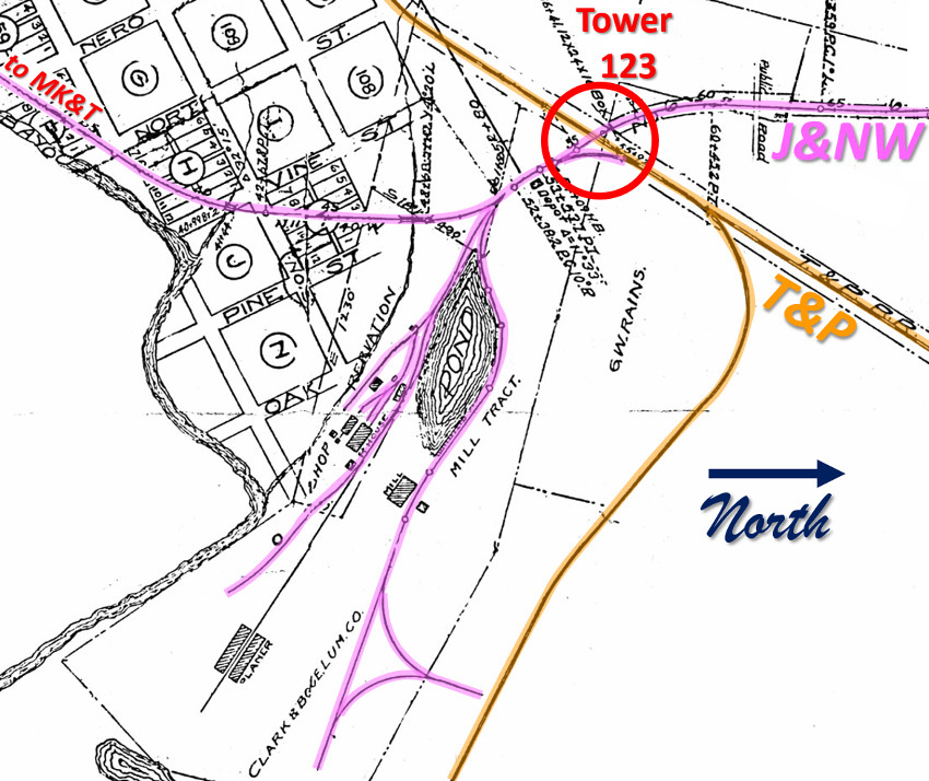 Tower 123 - A Crossing of the Texas & Pacific Railway and the Jefferson & Northwestern Railway