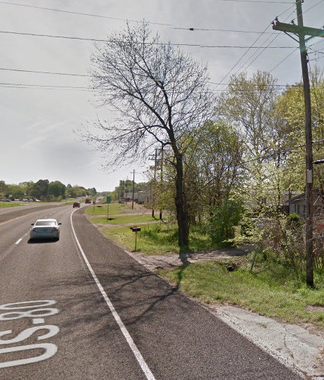 Mineola, the highway curves where the Katy railroad formerly crossed at grade on