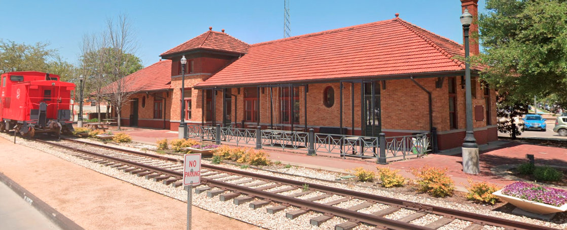 of the Katy depot (left) faces the front of the B-RI depot (right.) The BNSF