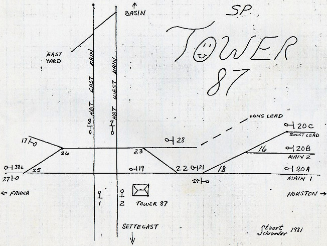 With the UP/SP merger, UP controls both Englewood Yard and Settegast Yard, which is located a short distance north of Tower 87.