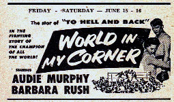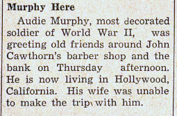 ![]() Above: Like Kingston and Farmersville, Celeste claimed to be the home of Audie Murphy. His visit to Celeste was noted in the Courier on October 19, 1951. Below: This ad for an Audie Murphy movie at the theater in Leonard appeared in the Courier, June 15, 1956. ![]() |